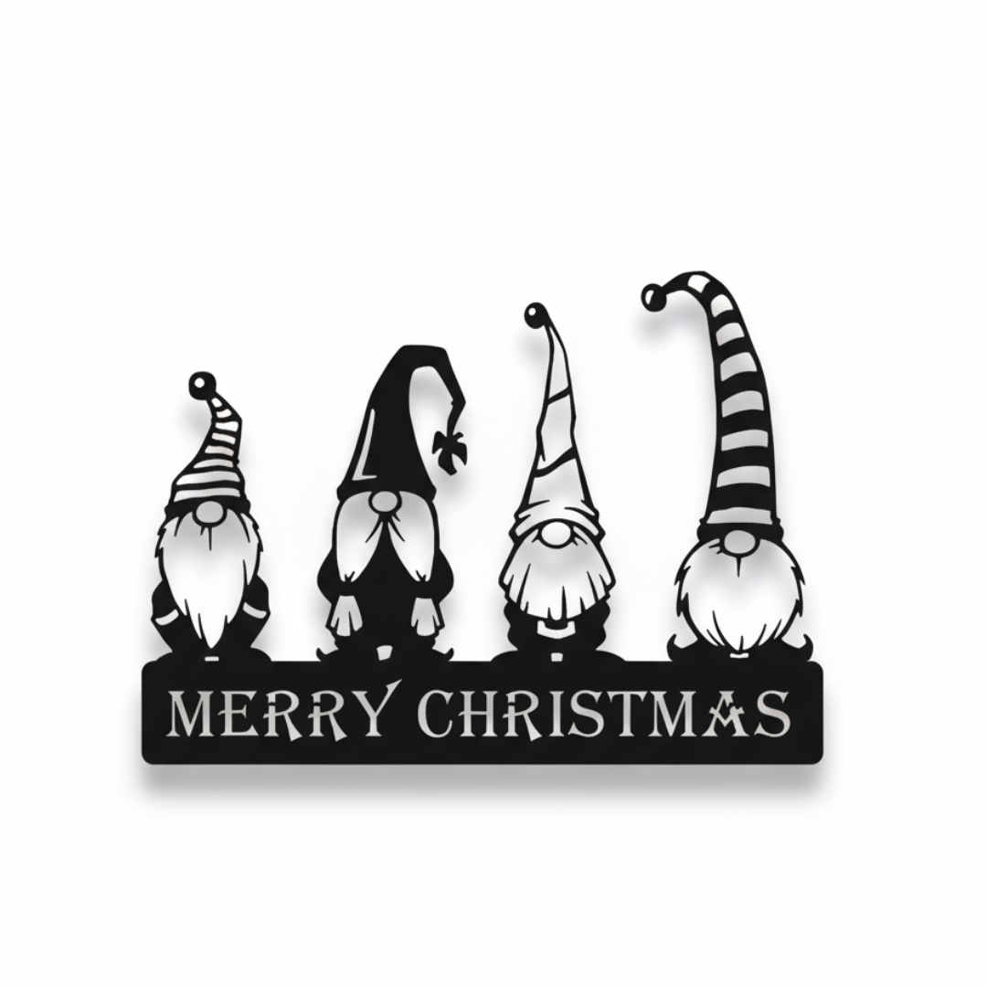 Christmas Gnomes “Merry Christmas” Laser-Cut Metal Sign – Holiday Wall Décor (20" × 10")